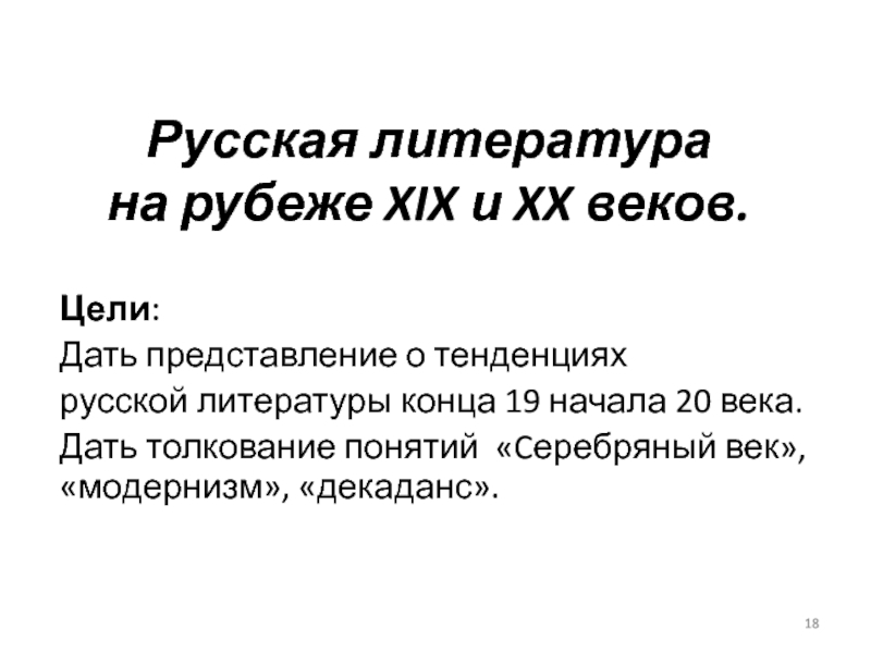 русской литературы конца 19 начала 20 века.