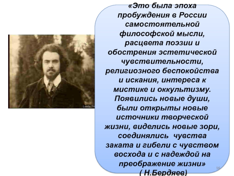 Слайд 16«Это была эпоха пробуждения в России самостоятельной философской мысли, расцвета