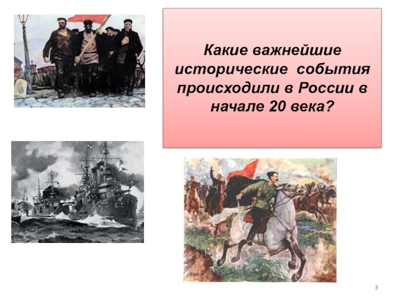 Слайд 3Какие важнейшие исторические события происходили в России в начале 20