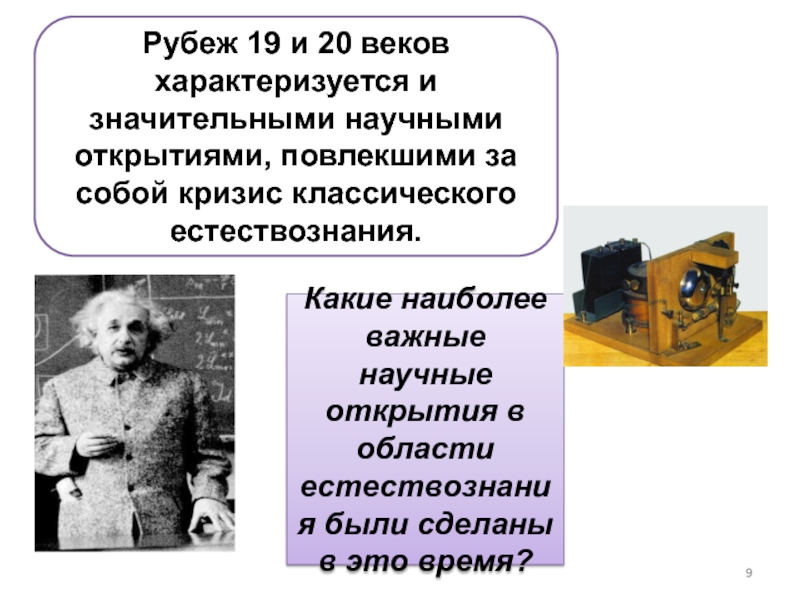 Слайд 9Рубеж 19 и 20 веков характеризуется и значительными научными открытиями,