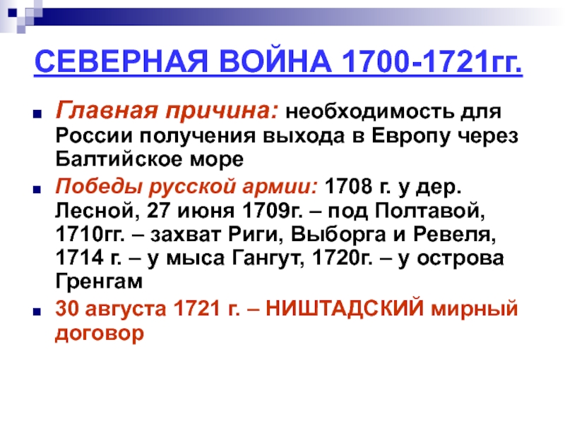 (преемственность в действиях по отношению к Швеции, Польше и Турции).