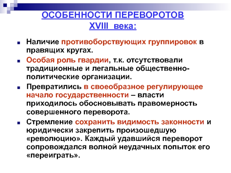 Слайд 43ОСОБЕННОСТИ ПЕРЕВОРОТОВ