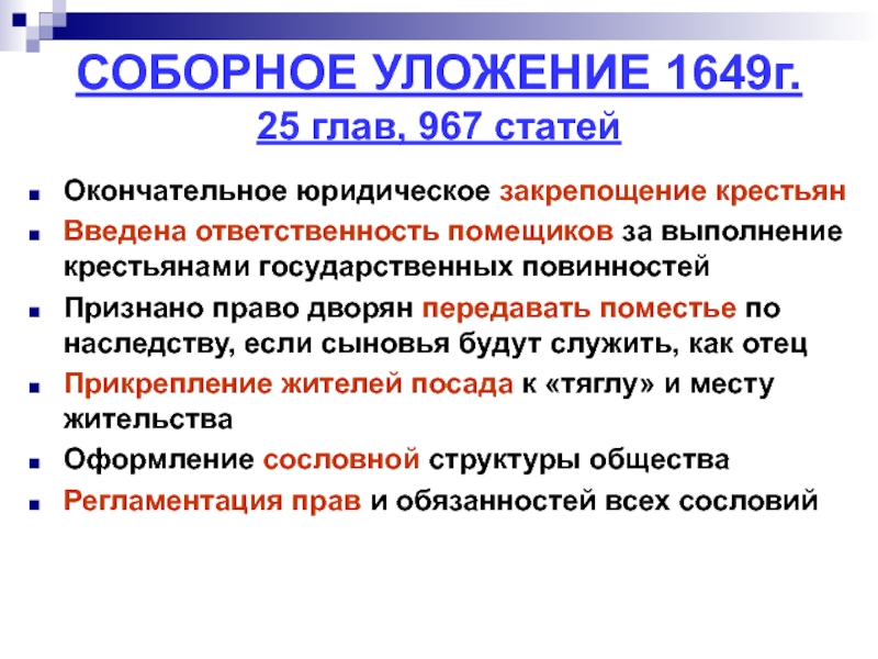 Слайд 13СОБОРНОЕ УЛОЖЕНИЕ 1649г.