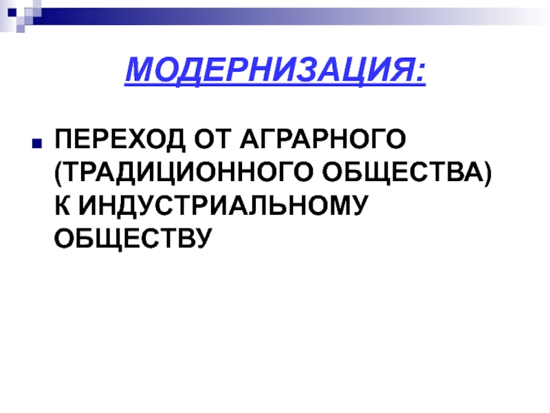 ПЕРЕХОД ОТ АГРАРНОГО (ТРАДИЦИОННОГО ОБЩЕСТВА) К ИНДУСТРИАЛЬНОМУ ОБЩЕСТВУ