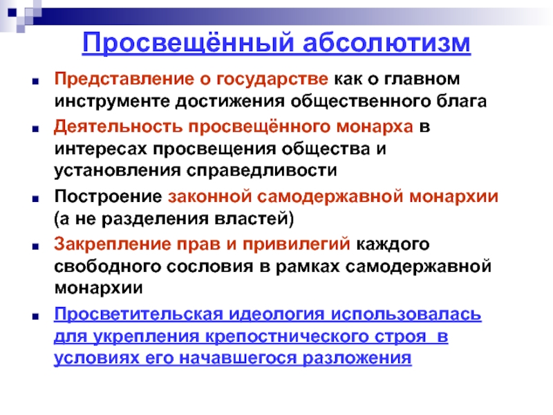 Просветительская идеология использовалась для укрепления крепостнического строя в условиях его начавшегося разложения