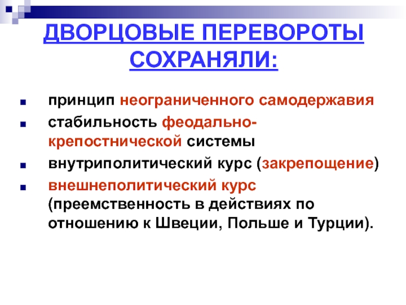 Слайд 44ДВОРЦОВЫЕ ПЕРЕВОРОТЫ СОХРАНЯЛИ: