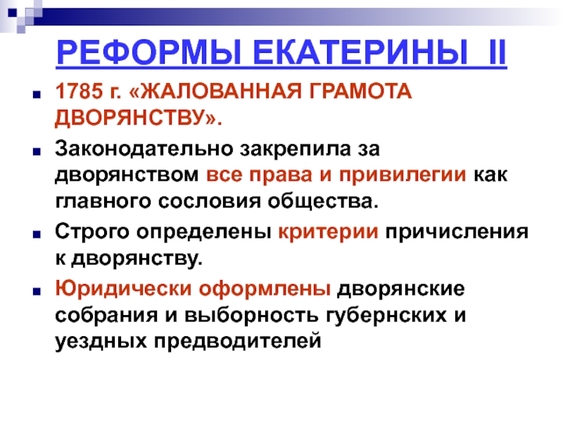 1785 г. «ЖАЛОВАННАЯ ГРАМОТА ДВОРЯНСТВУ».