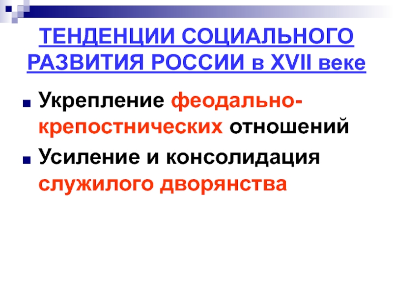 Слайд 10ТЕНДЕНЦИИ СОЦИАЛЬНОГО РАЗВИТИЯ РОССИИ в XVII веке