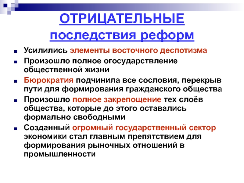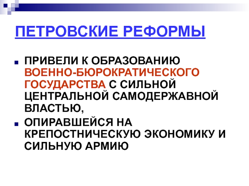 ПРИВЕЛИ К ОБРАЗОВАНИЮ ВОЕННО-БЮРОКРАТИЧЕСКОГО ГОСУДАРСТВА С СИЛЬНОЙ ЦЕНТРАЛЬНОЙ САМОДЕРЖАВНОЙ