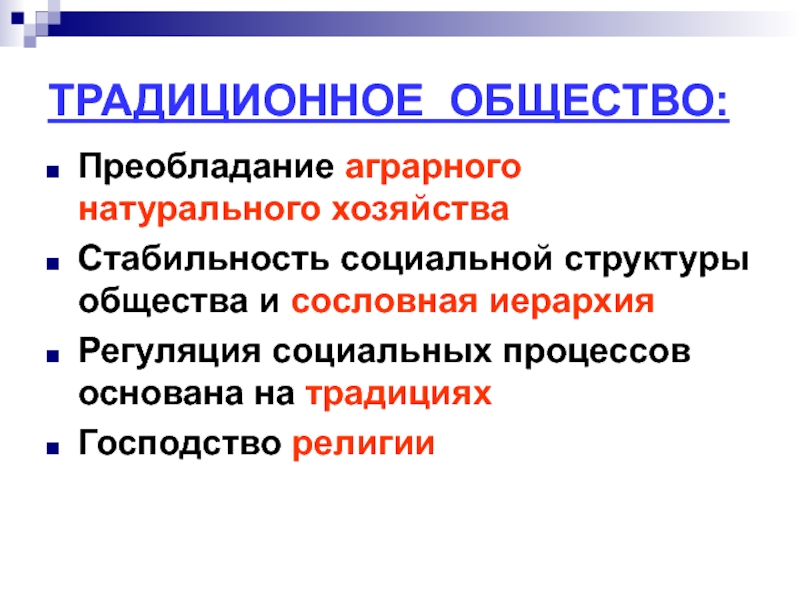 Слайд 3ТРАДИЦИОННОЕ ОБЩЕСТВО: