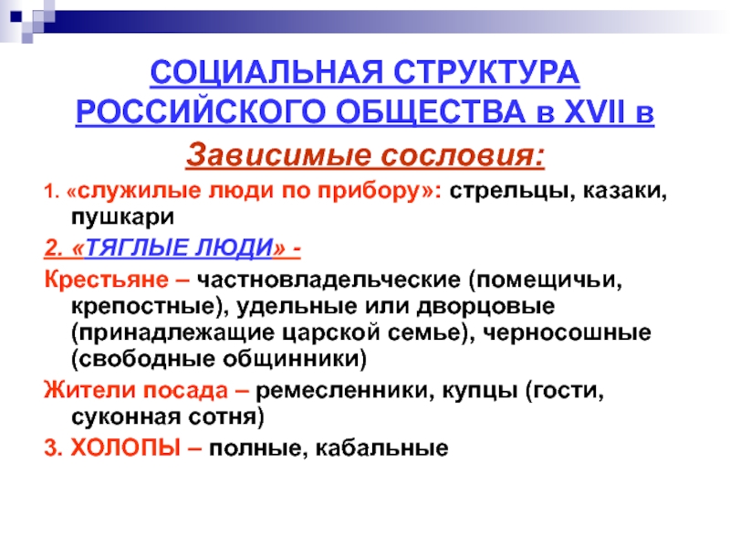 Слайд 12СОЦИАЛЬНАЯ СТРУКТУРА РОССИЙСКОГО ОБЩЕСТВА в XVII в