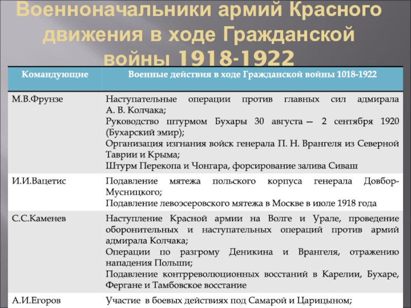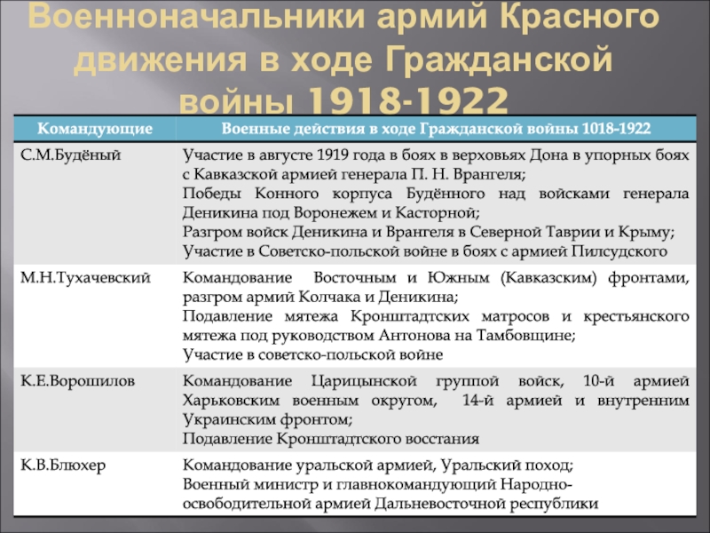 Слайд 21Военноначальники армий Красного движения в ходе Гражданской войны 1918-1922