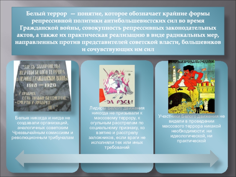 Слайд 29Белый террор — понятие, которое обозначает крайние формы репрессивной политики