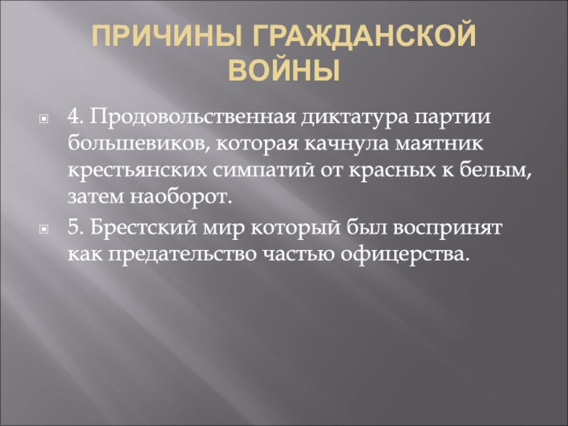 Слайд 6ПРИЧИНЫ ГРАЖДАНСКОЙ ВОЙНЫ