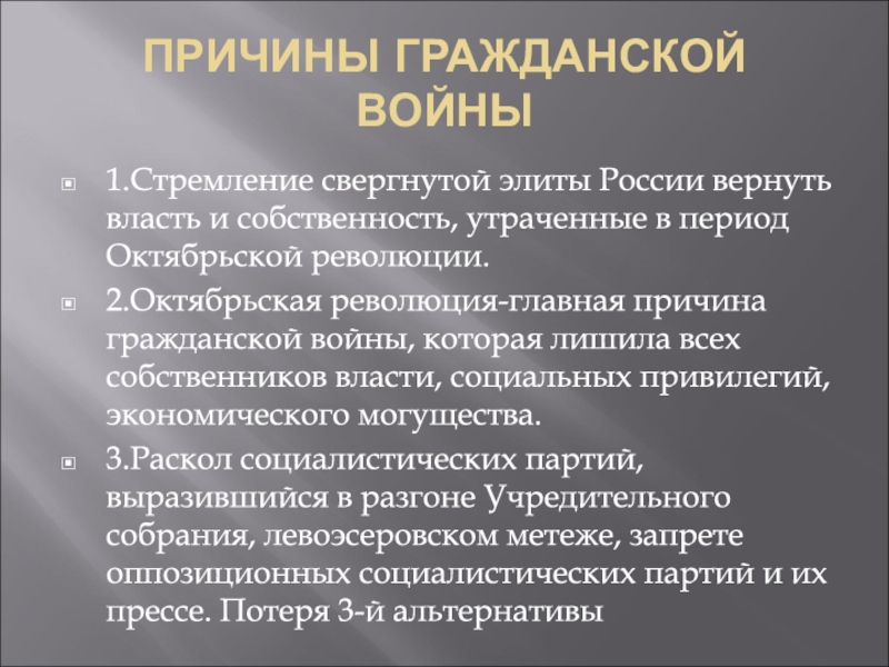Слайд 5ПРИЧИНЫ ГРАЖДАНСКОЙ ВОЙНЫ