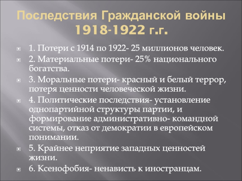 Слайд 48Последствия Гражданской войны 1918-1922 г.г.