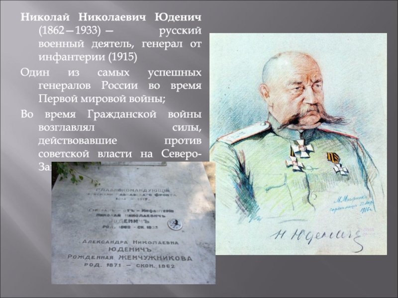 Слайд 40Николай Николаевич Юденич (1862—1933) — русский военный деятель, генерал от инфантерии