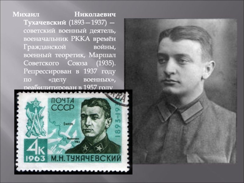 Слайд 23Михаил Николаевич Тухачевский (1893—1937) — советский военный деятель, военачальник РККА времён