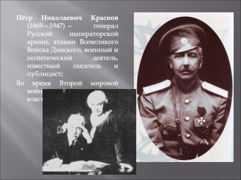 Слайд 35Пётр Николаевич Краснов (1869—1947) — генерал Русской императорской армии, атаман Всевеликого