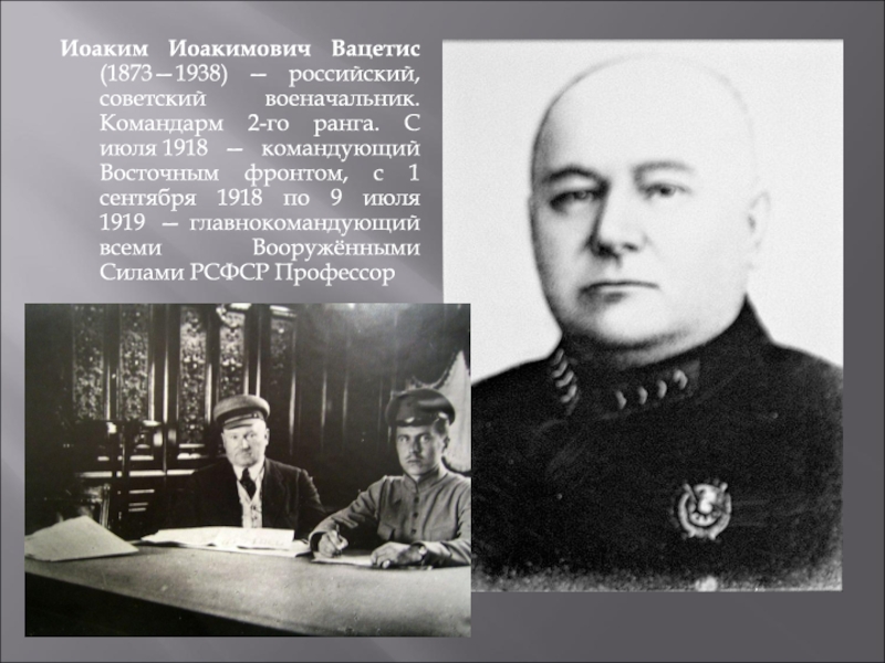 Слайд 18Иоаким Иоакимович Вацетис (1873—1938) — российский, советский военачальник. Командарм 2-го