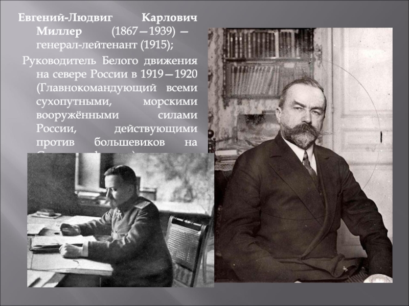 Слайд 42Евгений-Людвиг Карлович Миллер (1867—1939) — генерал-лейтенант (1915);