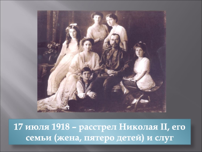 Слайд 2617 июля 1918 – расстрел Николая II, его семьи (жена,
