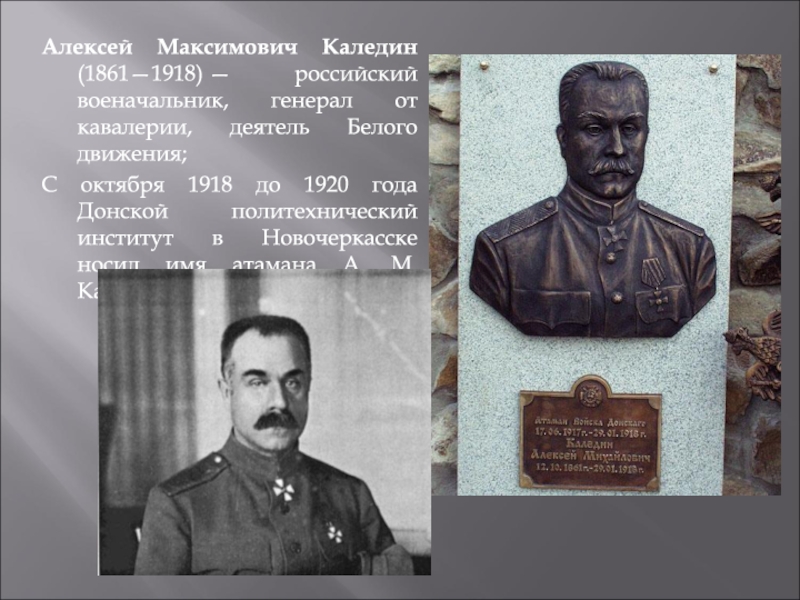 Слайд 36Алексей Максимович Каледин (1861—1918) — российский военачальник, генерал от кавалерии, деятель