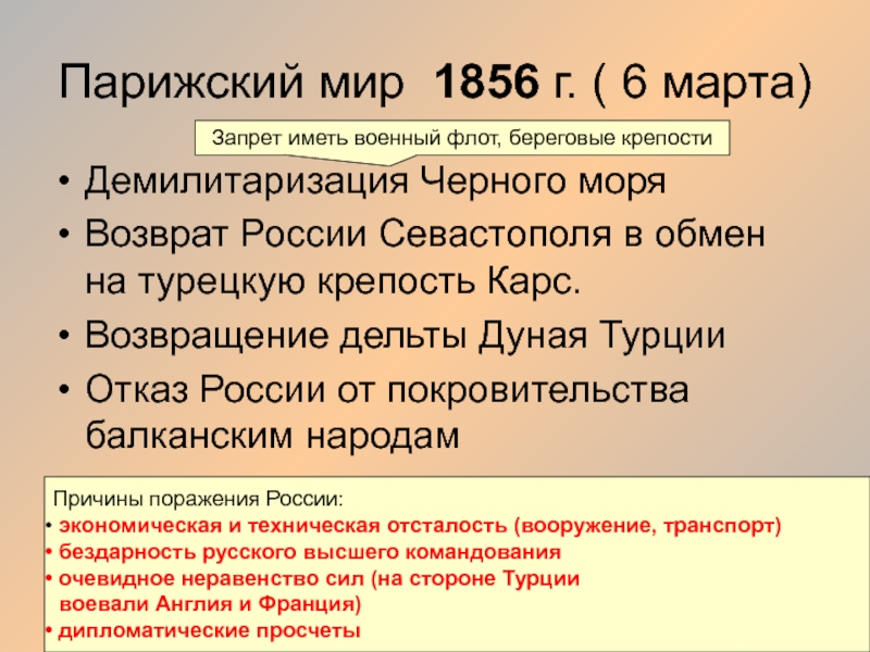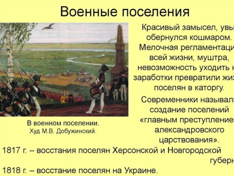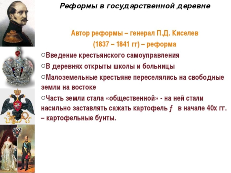 отмена крепостного права, половина земель – помещикам, половина – крестьянским общинам