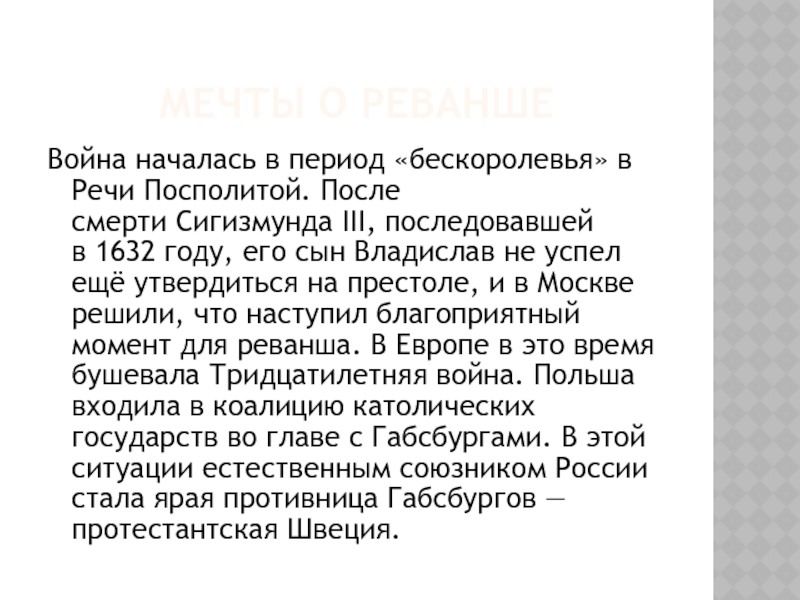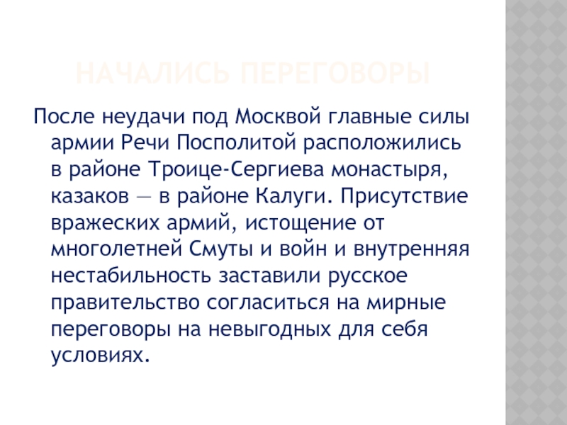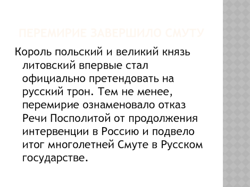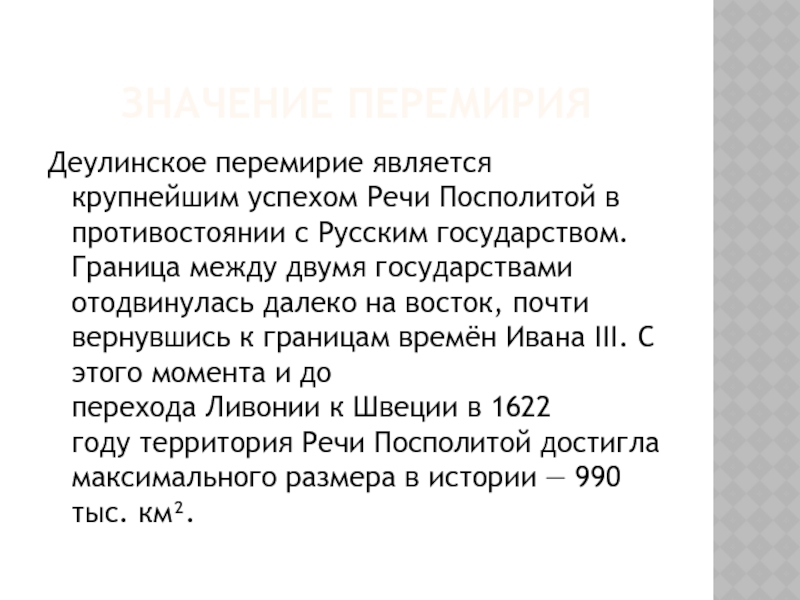 с его землями, отказавшимися присягнуть шведской короне. Во-вторых, Москва, обеспечив тыл, получила возможность беспрепятственно продолжать войну с Польшей за возвращение захваченных русских территорий на западных рубежах.