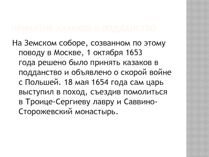 в Москве, 1 октября 1653 года решено было принять казаков в подданство и объявлено