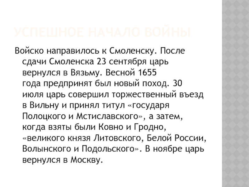 Весной 1655 года предпринят был новый поход. 30 июля царь совершил торжественный въезд в Вильну и