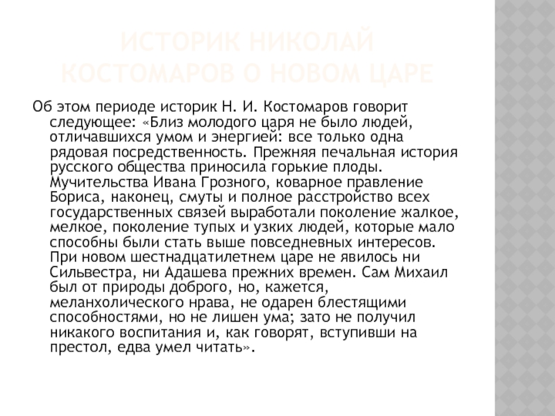Слайд 19Историк Николай костомаров о новом царе