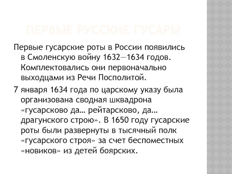 Первые гусарские роты в России появились в Смоленскую войну 1632—1634