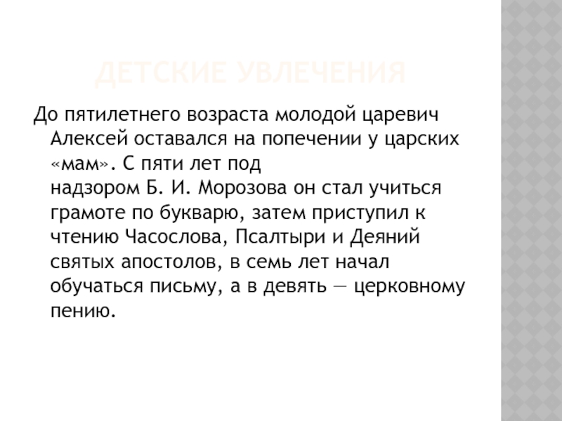 у царских «мам». С пяти лет под надзором Б. И. Морозова он стал учиться