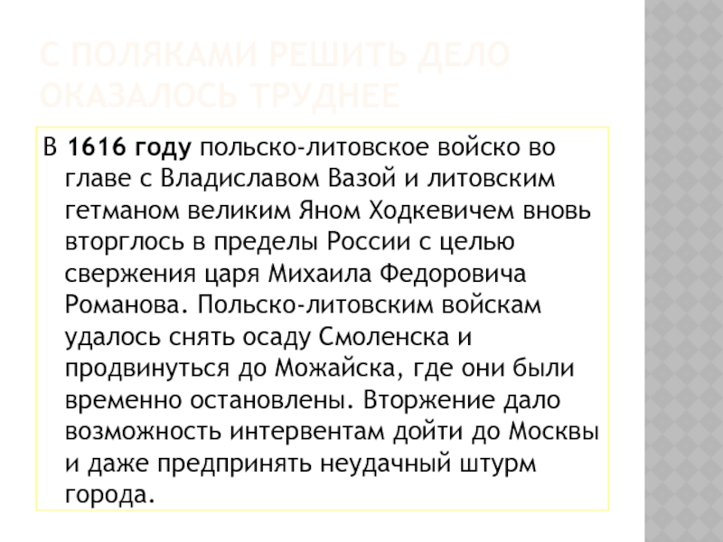 В начале XVII века для борьбы с польским