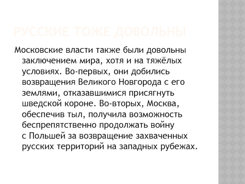 Московские власти также были довольны заключением мира, хотя