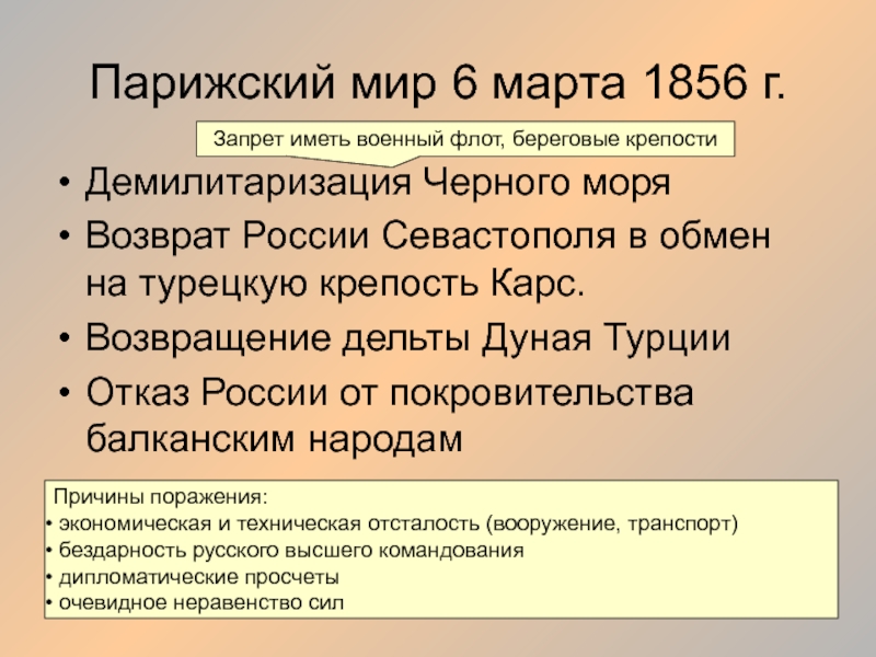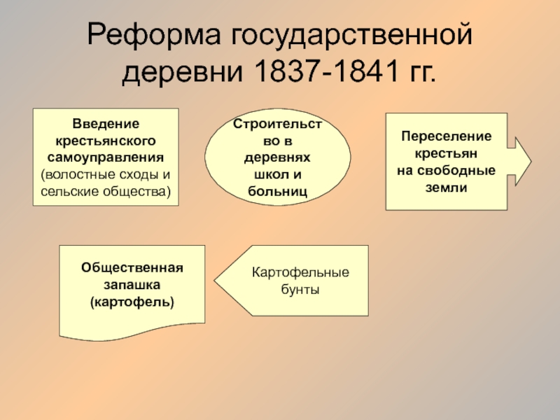 отмена крепостного права, половина земель – помещикам, половина – крестьянским общинам