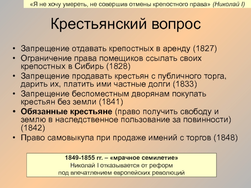 «Я не хочу умереть, не совершив отмены крепостного права» (Николай I)