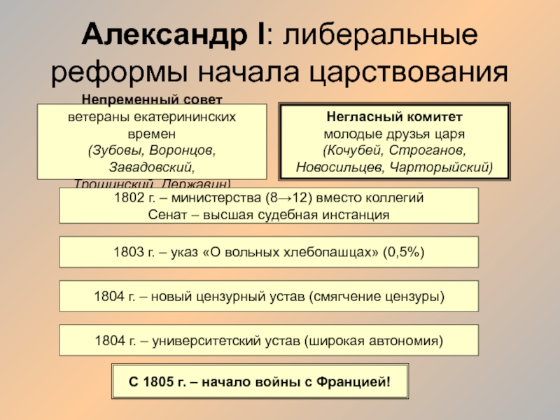 1804 г. – новый цензурный устав (смягчение цензуры)
