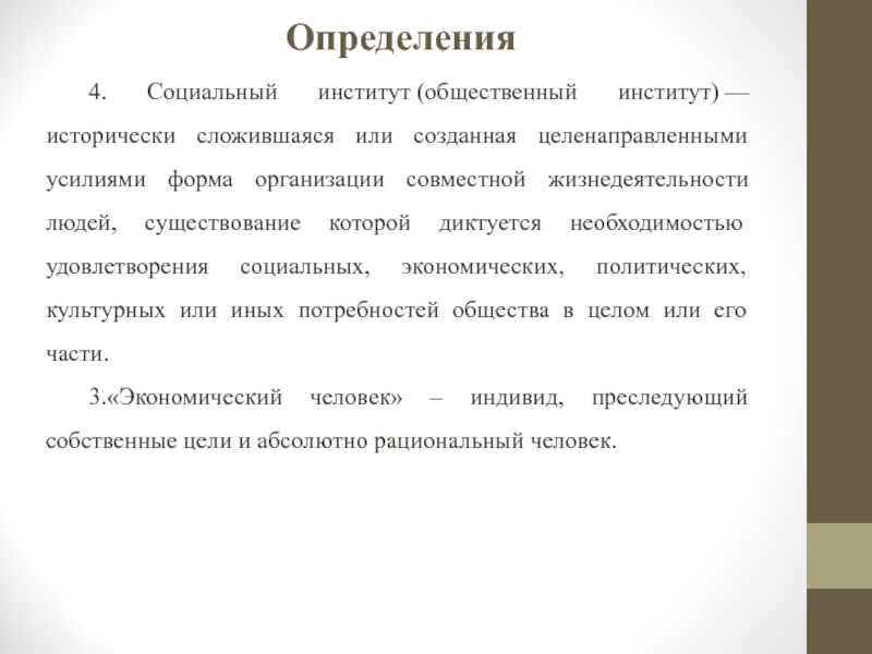 3.Под институтами следует понимать правила и принципы поведения, которым следуют люди в своих действиях.