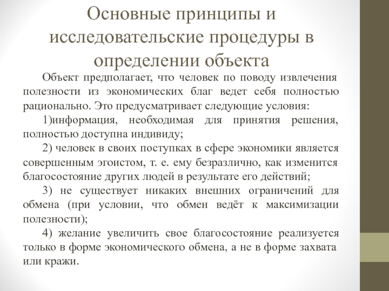 Слайд 5Основные принципы и исследовательские процедуры в определении объекта