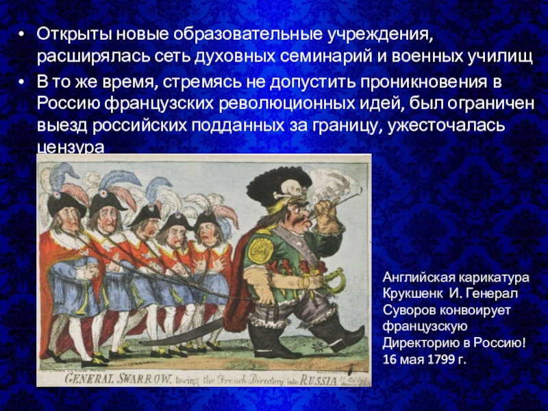 Крукшенк И. Генерал Суворов конвоирует французскую Директорию в Россию! 16 мая 1799 г.