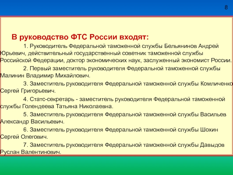 1. Руководитель Федеральной таможенной службы Бельянинов