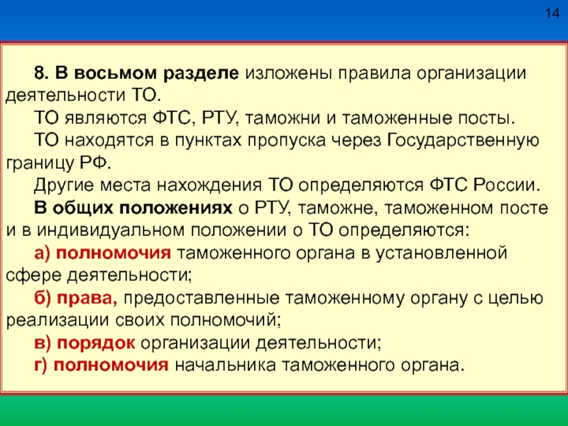 8. В восьмом разделе изложены правила организации деятельности ТО.