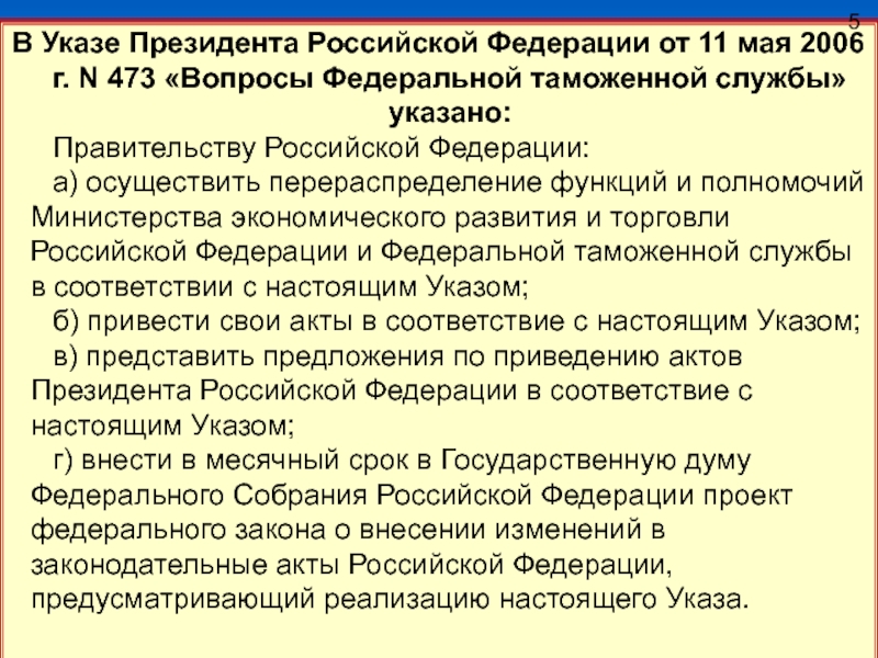 мая 2006 г. № 473 «Вопросы Федеральной таможенной службы» и