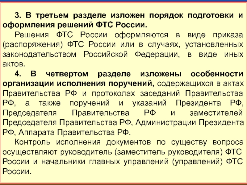3. В третьем разделе изложен порядок подготовки и оформления решений