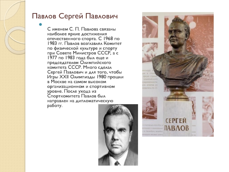 достижения отечественного спорта. С 1968 по 1983 гг. Павлов возглавлял