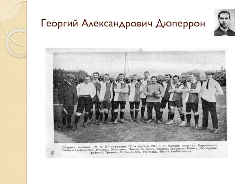 Слайд 9Основатель российского футбола и Олимпийского движения в России, первый российский футбольный