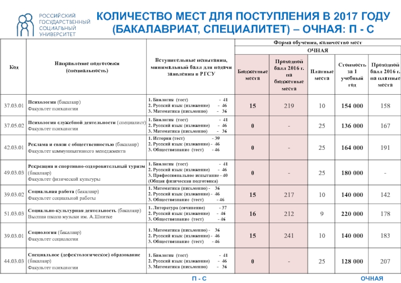 НА НАПРАВЛЕНИЯ ПОДГОТОВКИ ОЧНОЙ ФОРМЫ ОБУЧЕНИЯ: