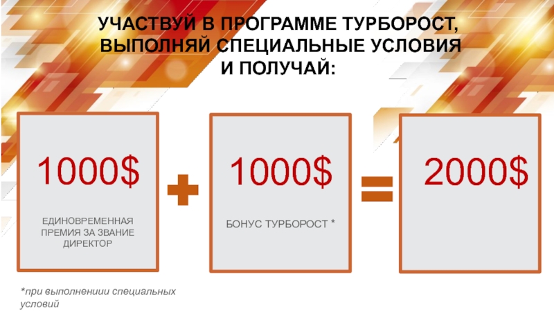 1000$ - специальный дополнительный бонус программы «Турборост»